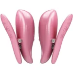 Estas lindas pinzas para pezones de color rosa agregan versatilidad divertida a toda tu diversión en el dormitorio con su diseño liviano e inalámbrico que se adhiere fácilmente con una superficie suave. ¡Cada pinza tiene 10 modos de vibración para explorar, que tú o tu pareja pueden controlar por separado para un placer personalizado!